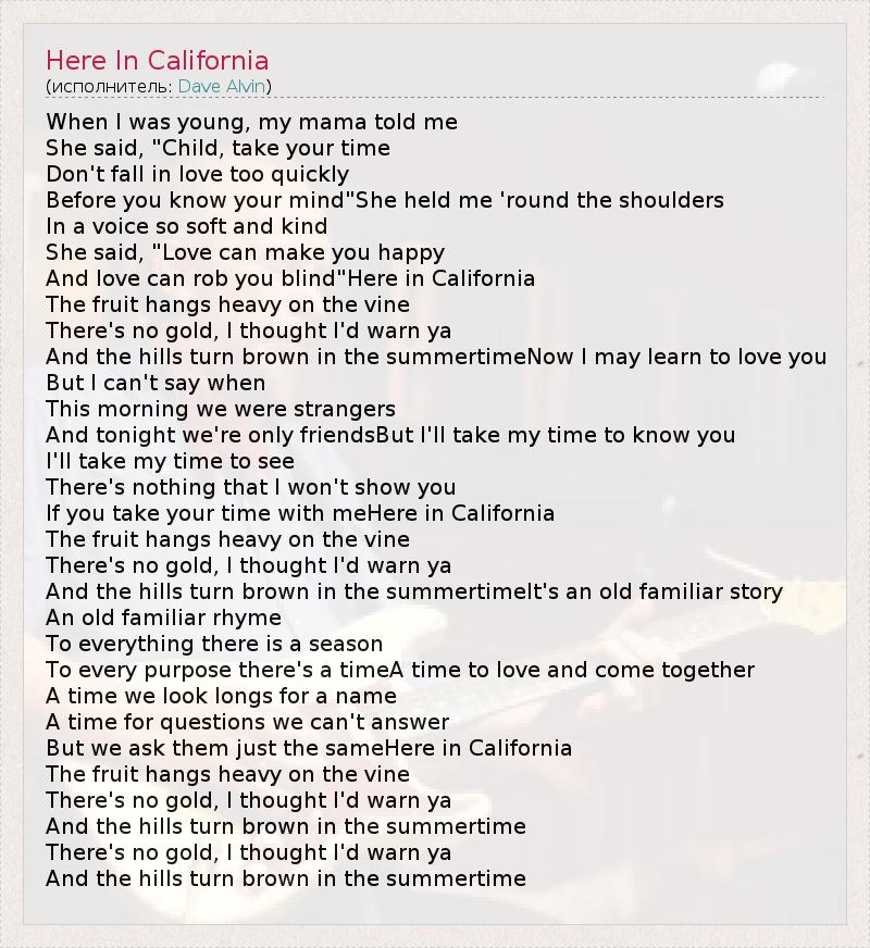 А как ты думаешь, о чем песня "Here In California" ?