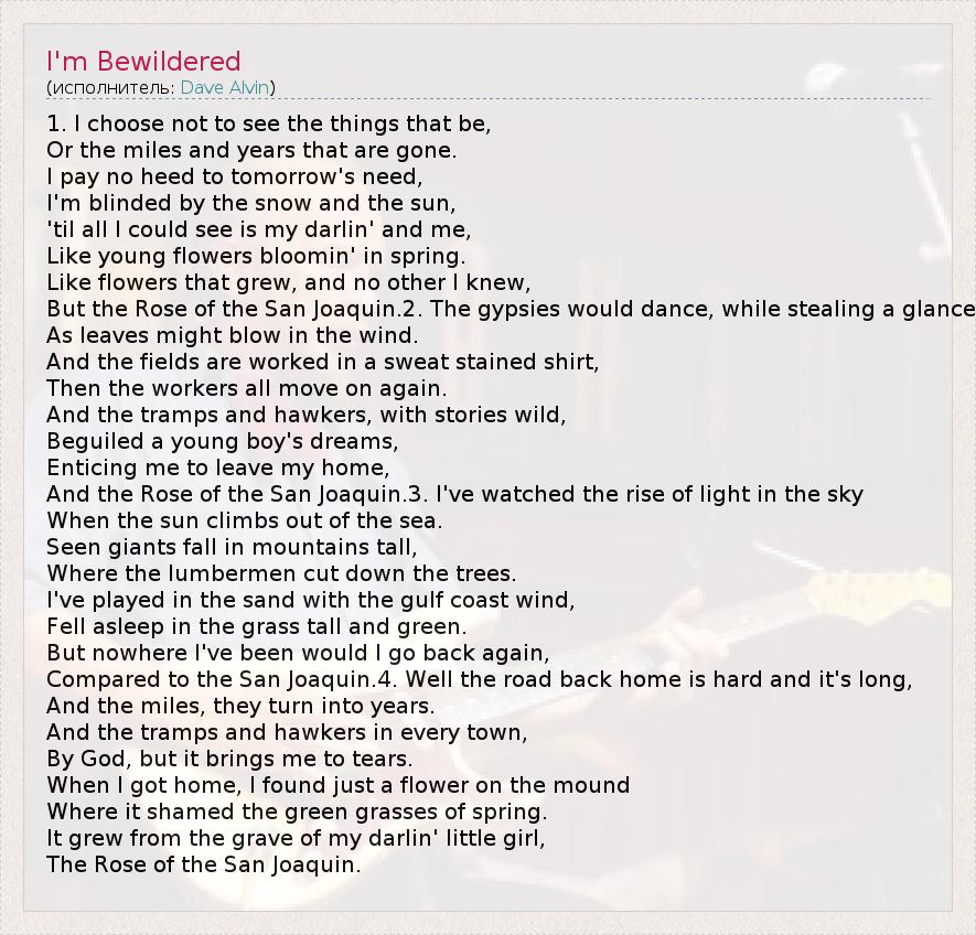 А как ты думаешь, о чем песня "I'm Bewildered" ?
