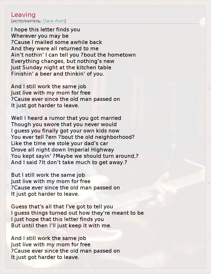 А как ты думаешь, о чем песня "Leaving" ?