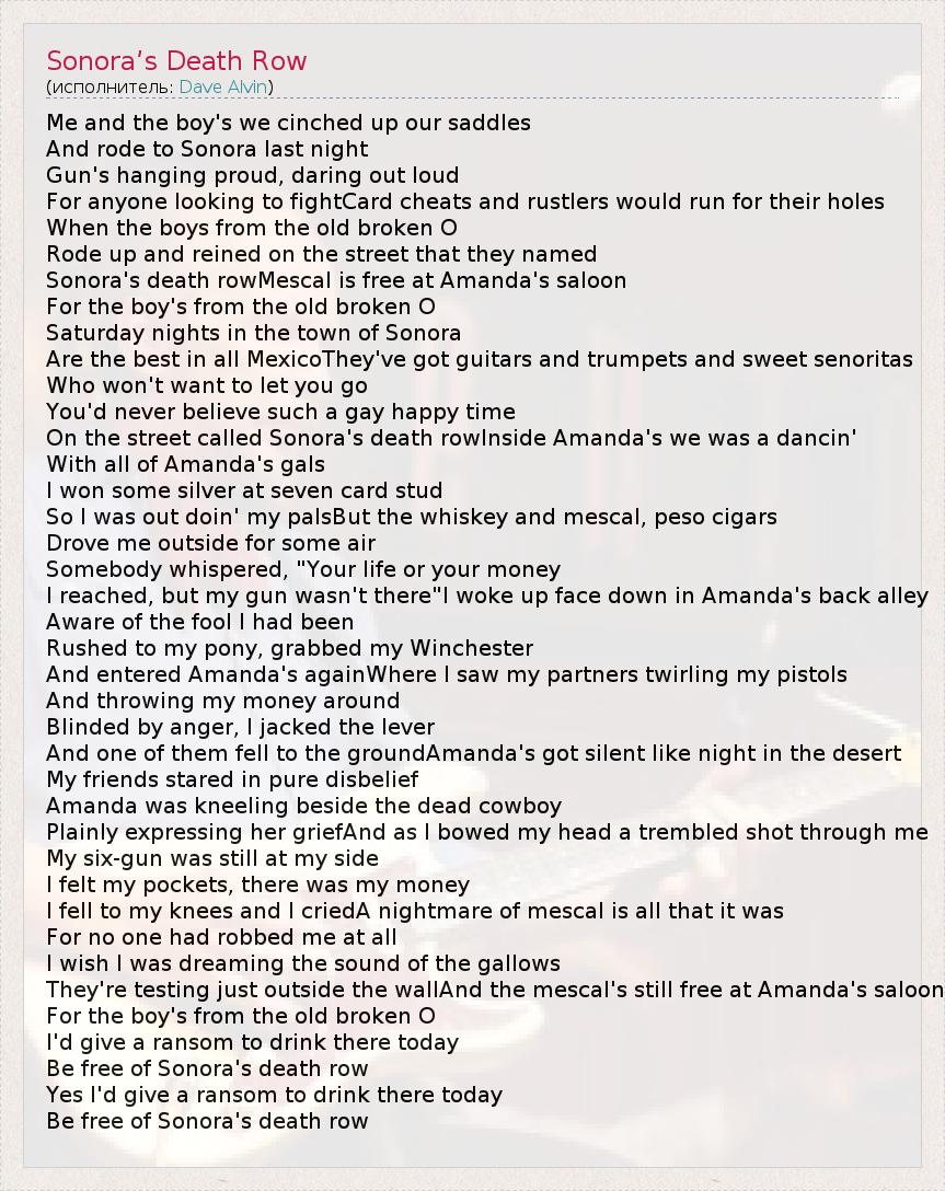А как ты думаешь, о чем песня "Sonora’s Death Row" ?