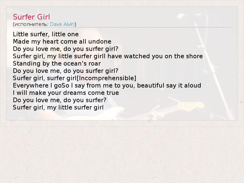 А как ты думаешь, о чем песня "Surfer Girl" ?