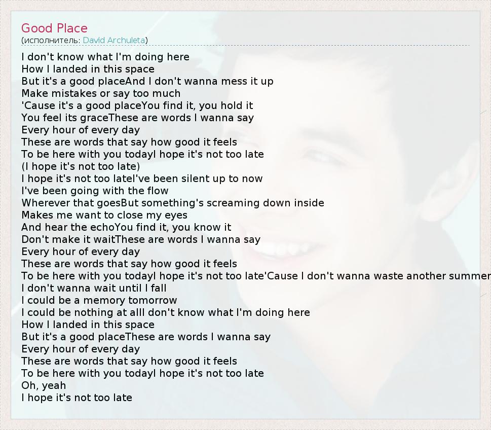 А как ты думаешь, о чем песня "Good Place" ?