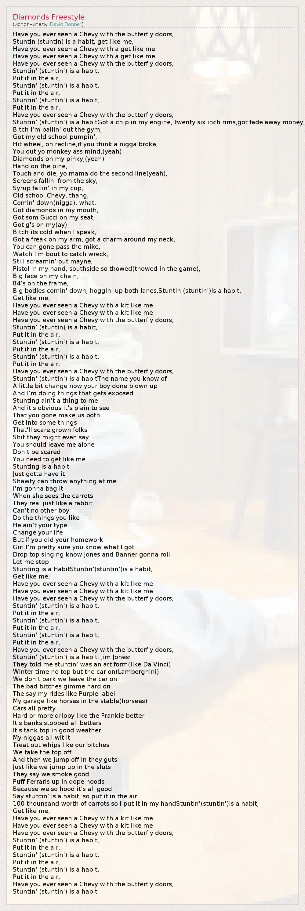 А как ты думаешь, о чем песня "Diamonds Freestyle" ?