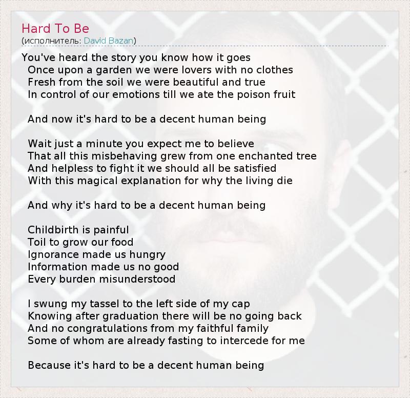 А как ты думаешь, о чем песня "Hard To Be" ?