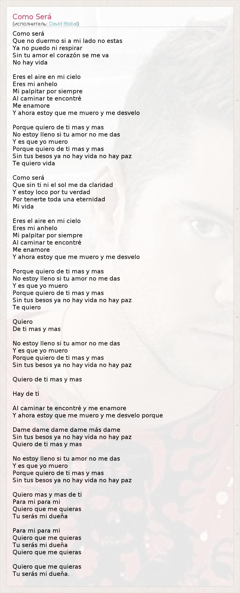 Это интересно:Давид Бисбал дебютировал в испанской "Фабрике звезд" - Operacion Triunfo. Его первый альбом Corazon Latino завоевал слушателей во всем испаноговорящем мире, а хиты с него не раз становились платиновыми. Стиль Давида - зажигательный и романтические песни латино.