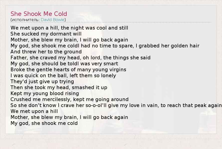 А как ты думаешь, о чем песня "She Shook Me Cold" ?