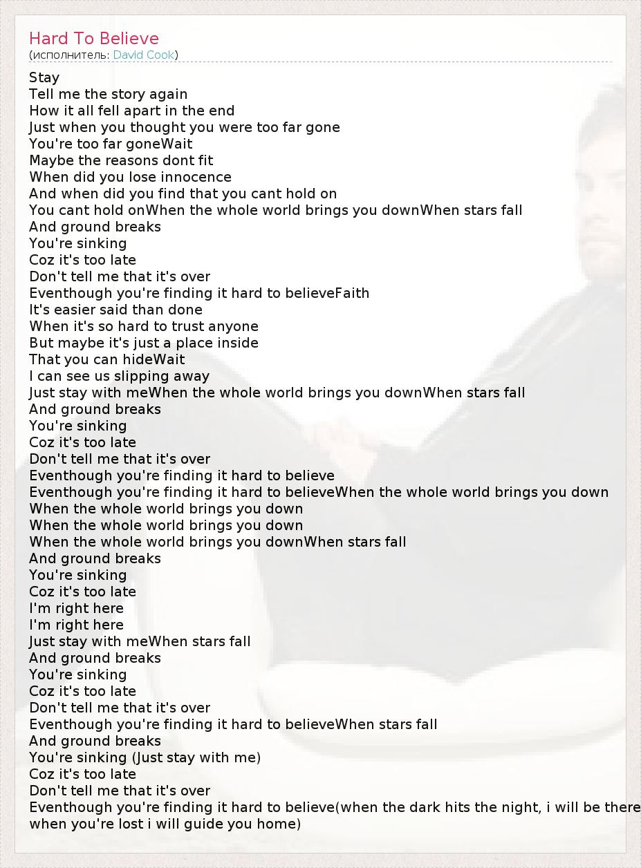 А как ты думаешь, о чем песня "Hard To Believe" ?