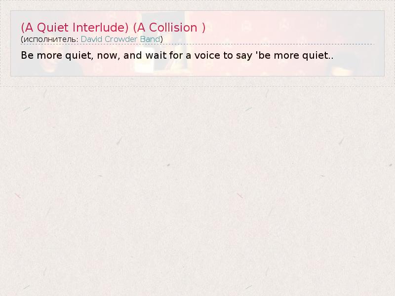 ГлавнаяИсполнителиDavid Crowder Band(A Quiet Interlude) (A Collision )
