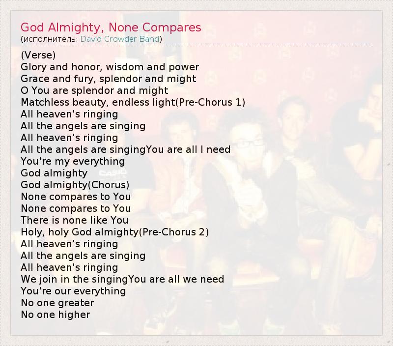 ГлавнаяИсполнителиDavid Crowder BandGod Almighty, None Compares