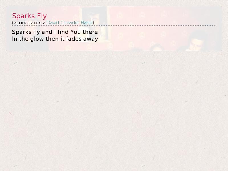 А как ты думаешь, о чем песня "Sparks Fly" ?