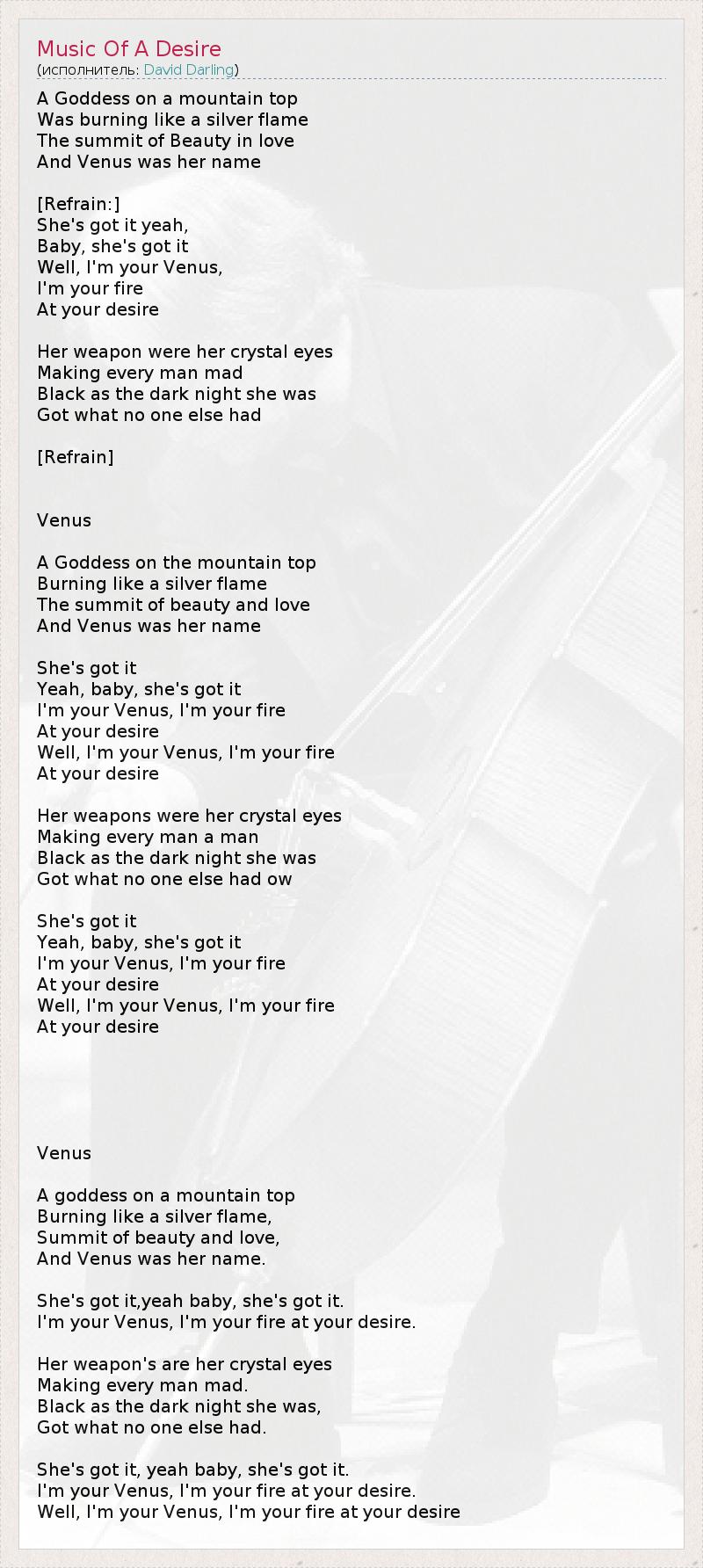 А как ты думаешь, о чем песня "Music Of A Desire" ?
