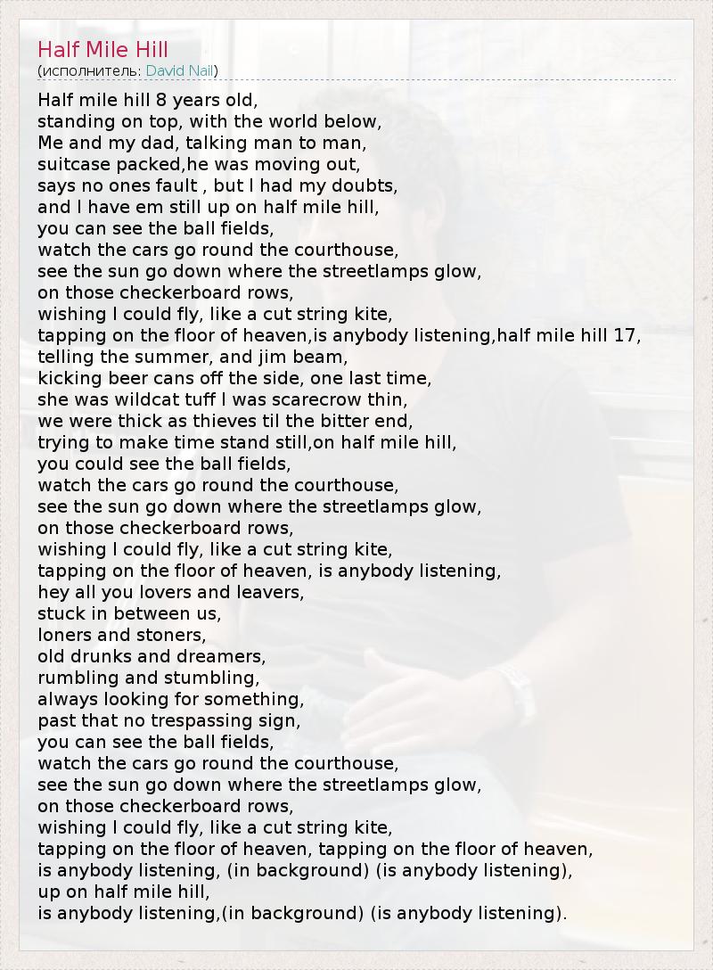 А как ты думаешь, о чем песня "Half Mile Hill" ?