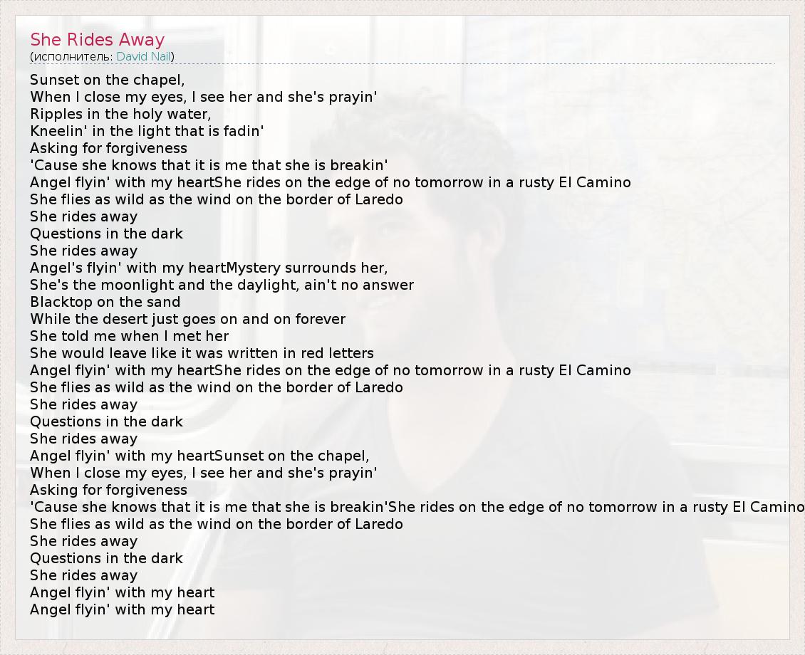 А как ты думаешь, о чем песня "She Rides Away" ?