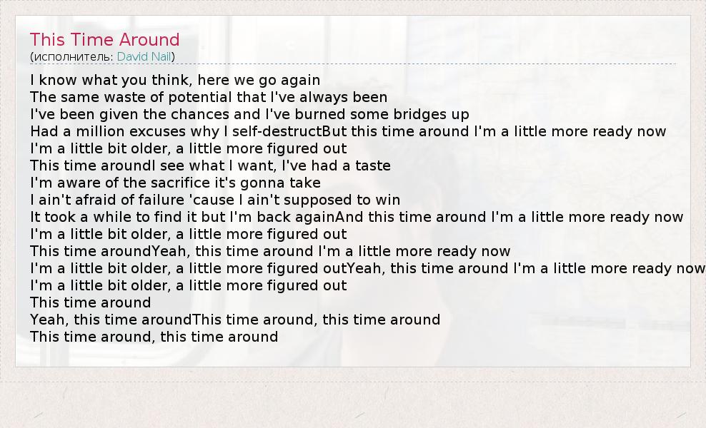 А как ты думаешь, о чем песня "This Time Around" ?
