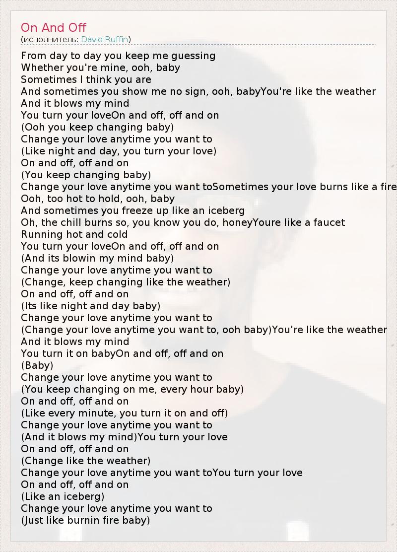 You turn your loveOn and off, off and on