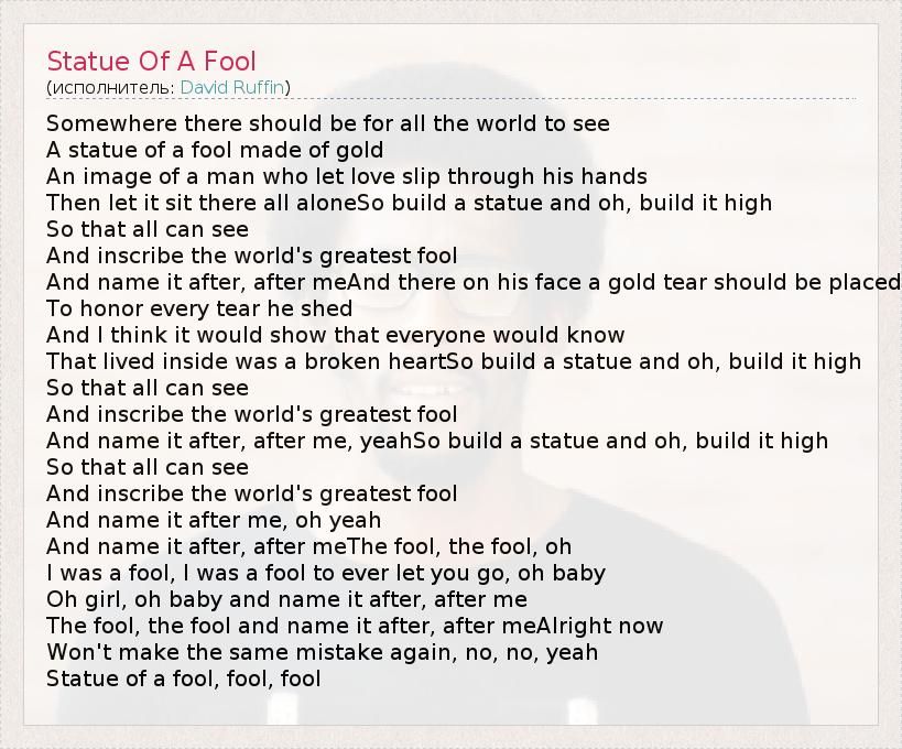 А как ты думаешь, о чем песня "Statue Of A Fool" ?