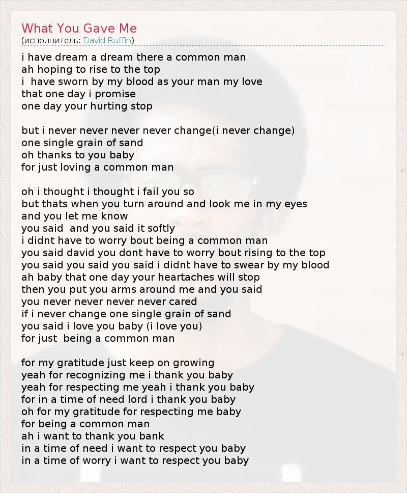 А как ты думаешь, о чем песня "What You Gave Me" ?