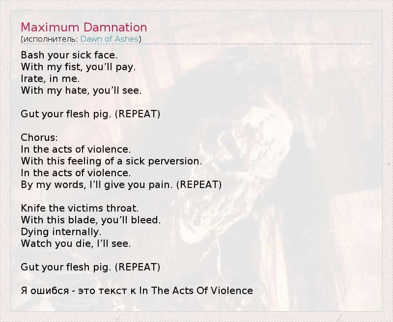 А как ты думаешь, о чем песня "Maximum Damnation" ?