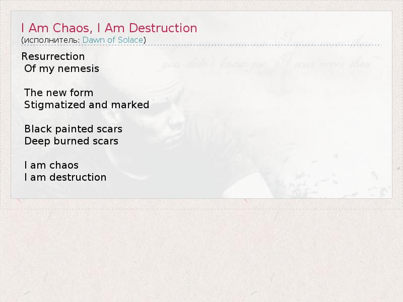 ГлавнаяИсполнителиDawn of SolaceI Am Chaos, I Am Destruction