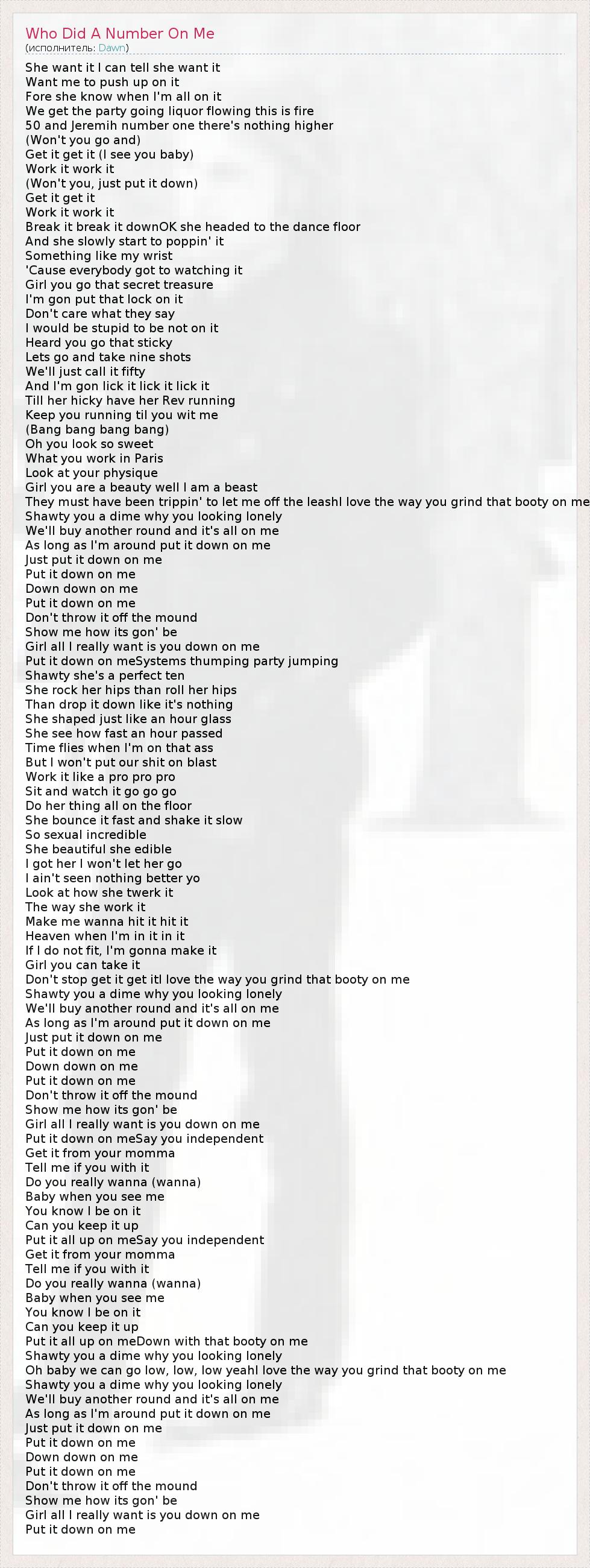 А как ты думаешь, о чем песня "Who Did A Number On Me" ?