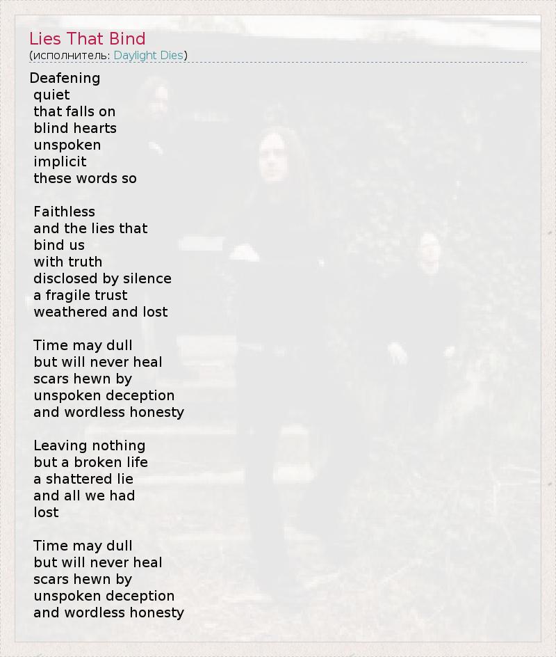 А как ты думаешь, о чем песня "Lies That Bind" ?