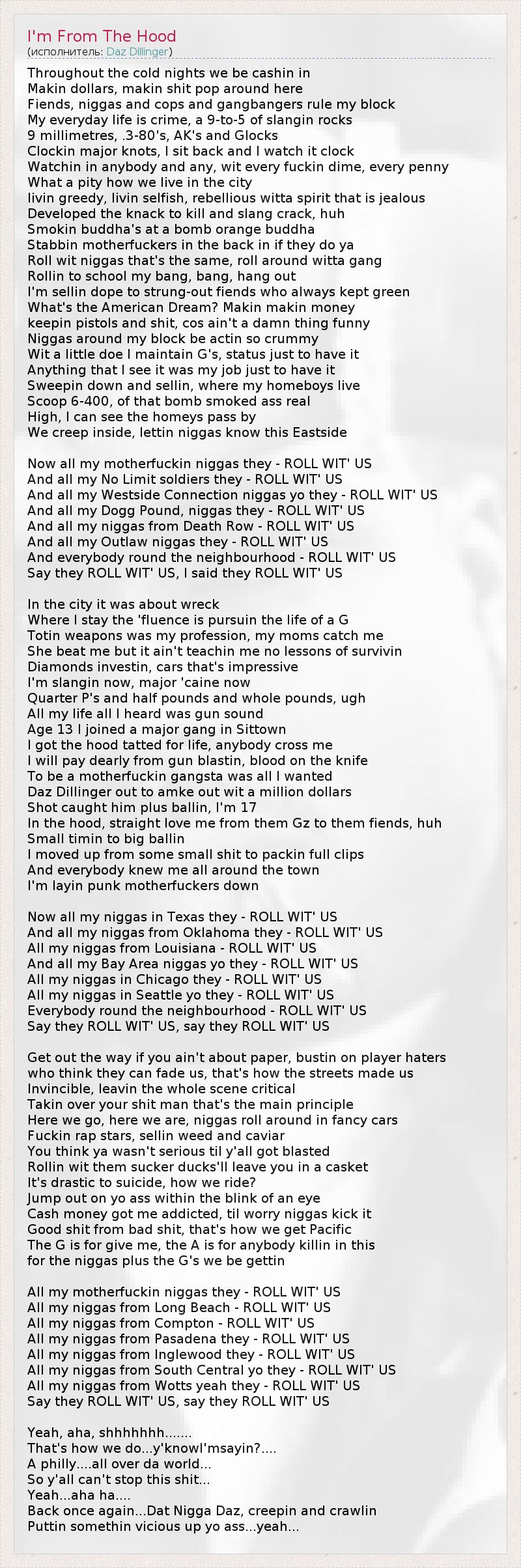 А как ты думаешь, о чем песня "I'm From The Hood" ?