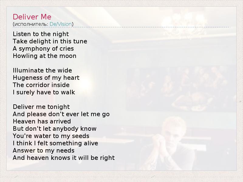 А как ты думаешь, о чем песня "Deliver Me" ?