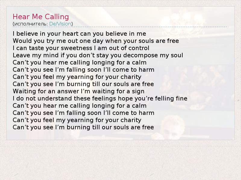А как ты думаешь, о чем песня "Hear Me Calling" ?