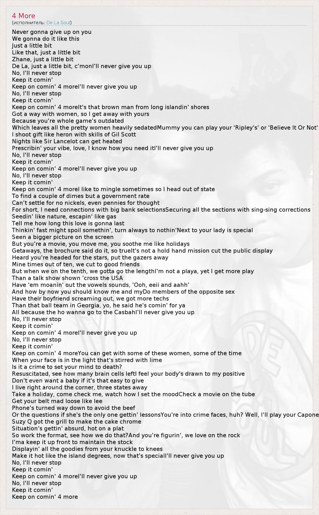 De La, just a little bit, c'monI'll never give you up