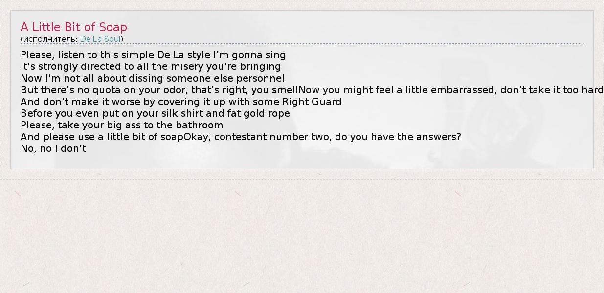 А как ты думаешь, о чем песня "A Little Bit of Soap" ?