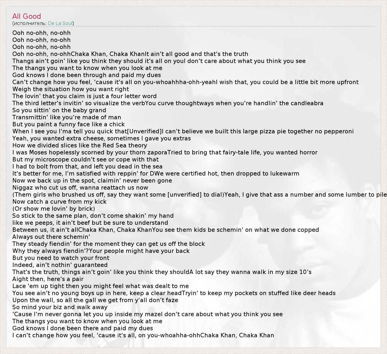 Ooh no-ohh, no-ohhChaka Khan, Chaka KhanIt ain't all good and that's the truth