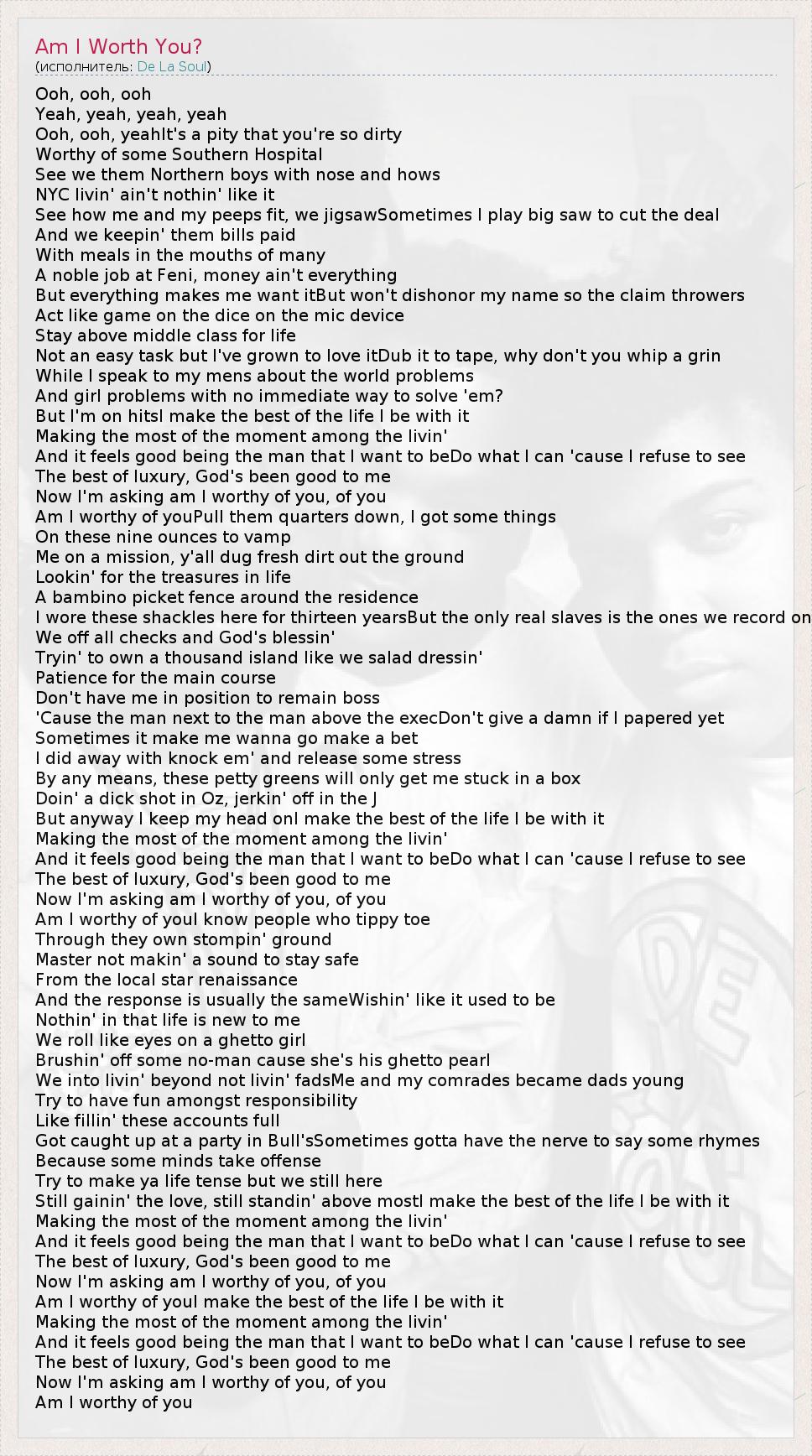 А как ты думаешь, о чем песня "Am I Worth You?" ?