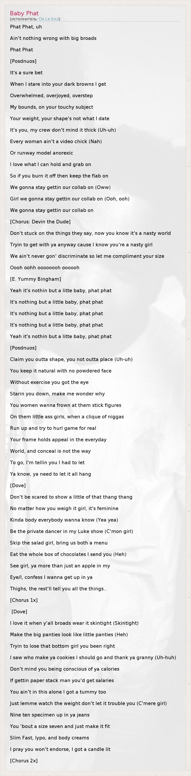 А как ты думаешь, о чем песня "Baby Phat" ?