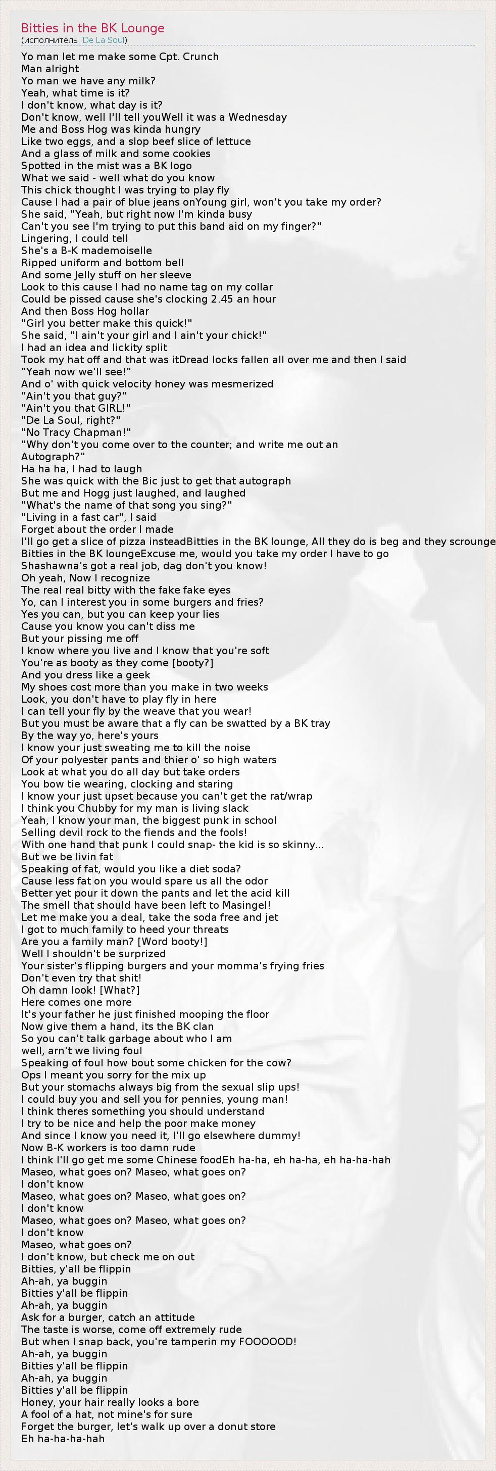 ГлавнаяИсполнителиDe La SoulBitties in the BK Lounge