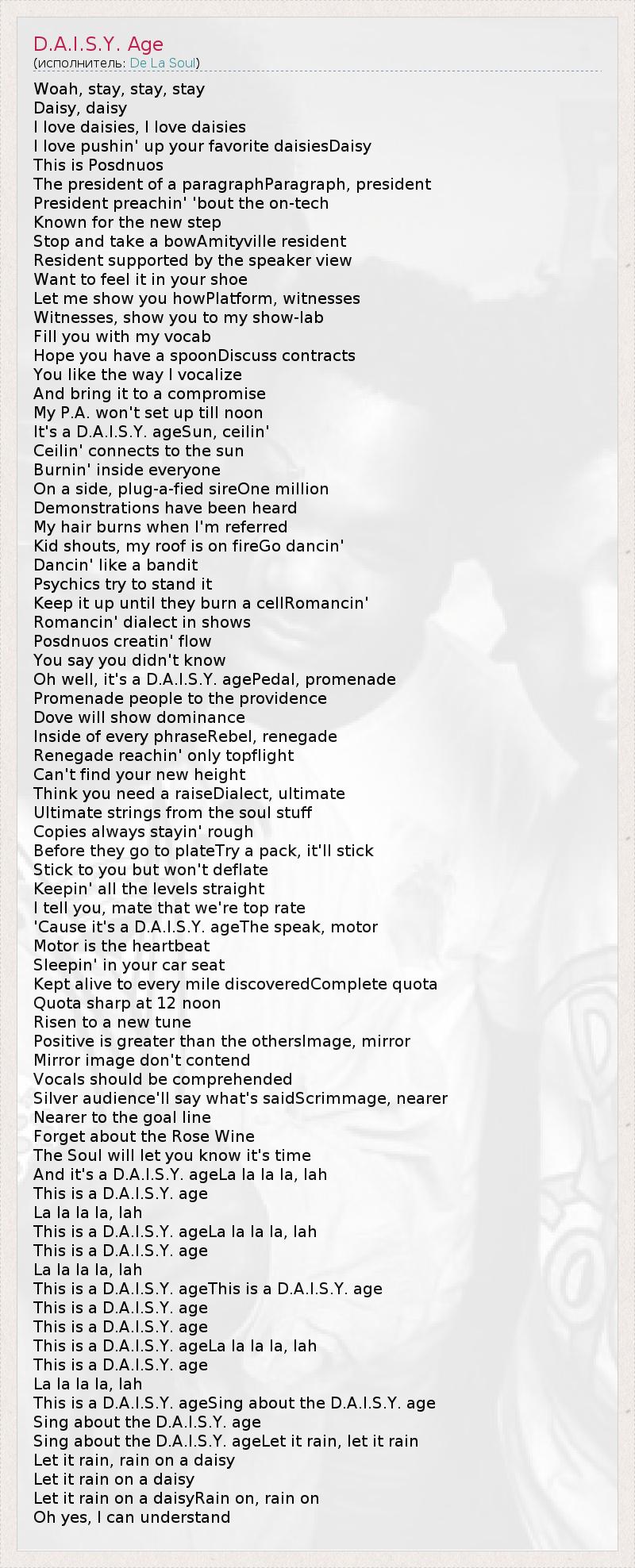 А как ты думаешь, о чем песня "D.A.I.S.Y. Age" ?