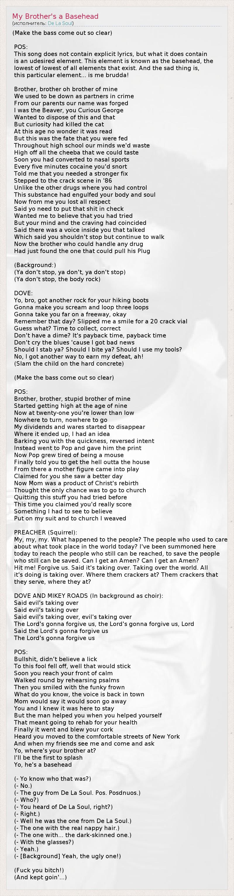 А как ты думаешь, о чем песня "My Brother's a Basehead" ?