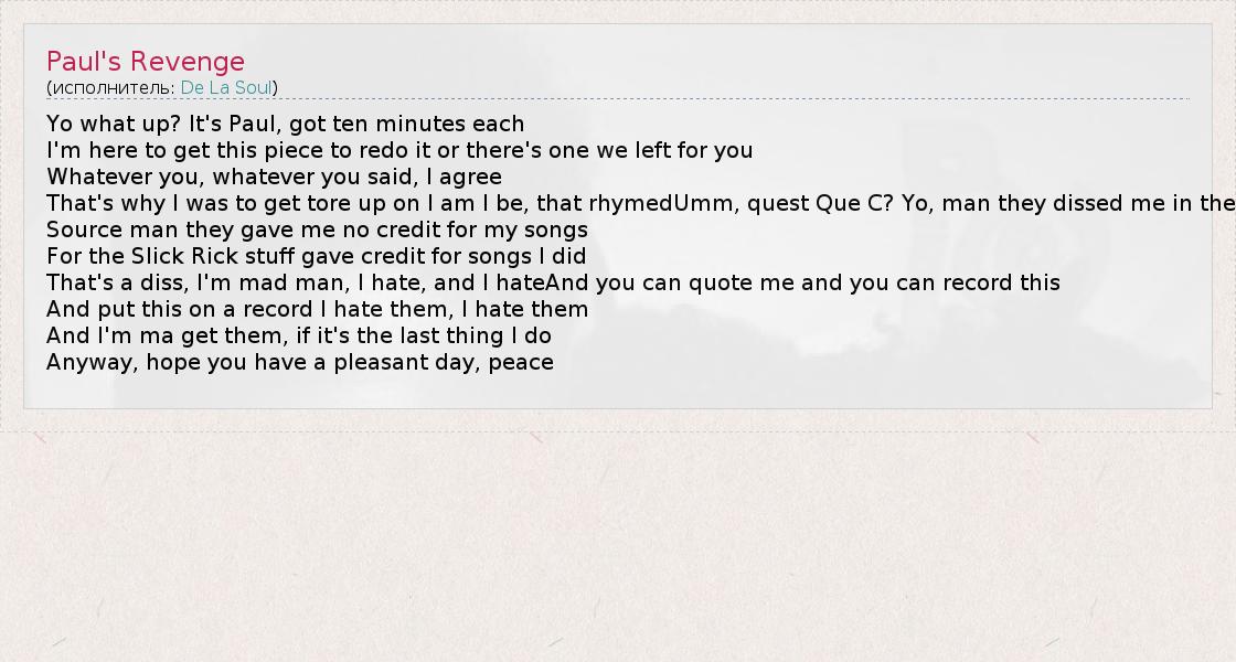 А как ты думаешь, о чем песня "Paul's Revenge" ?