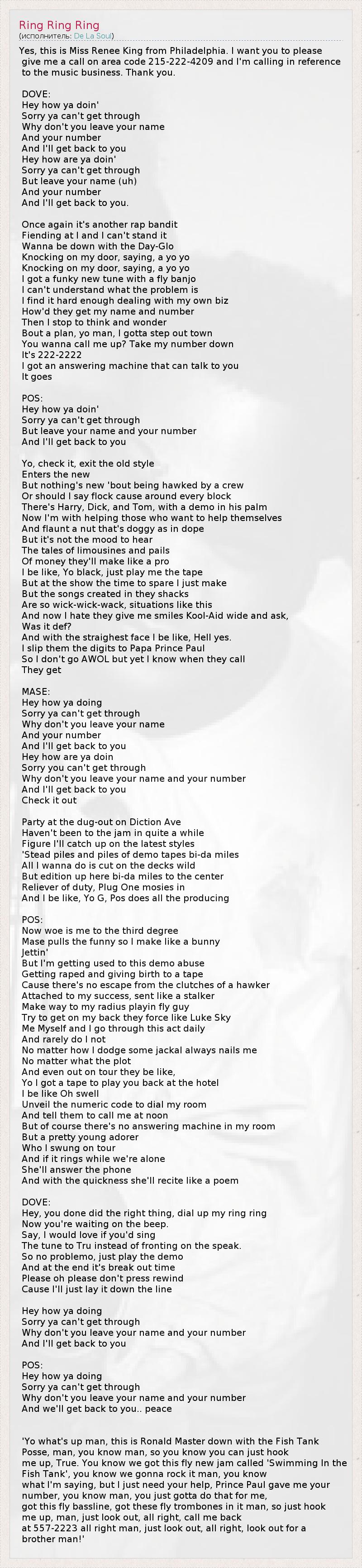А как ты думаешь, о чем песня "Ring Ring Ring" ?