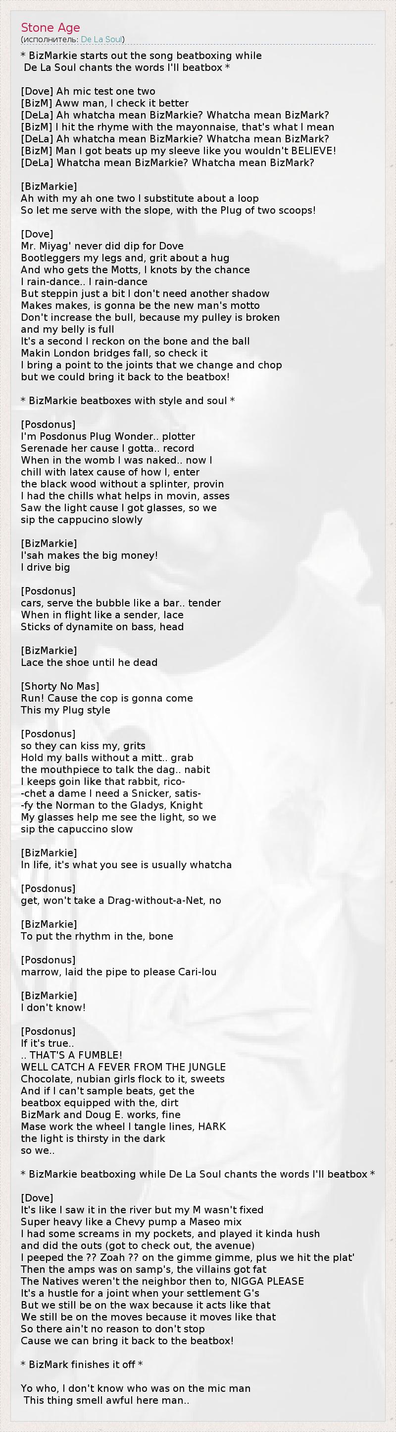 * BizMarkie beatboxing while De La Soul chants the words I'll beatbox *
