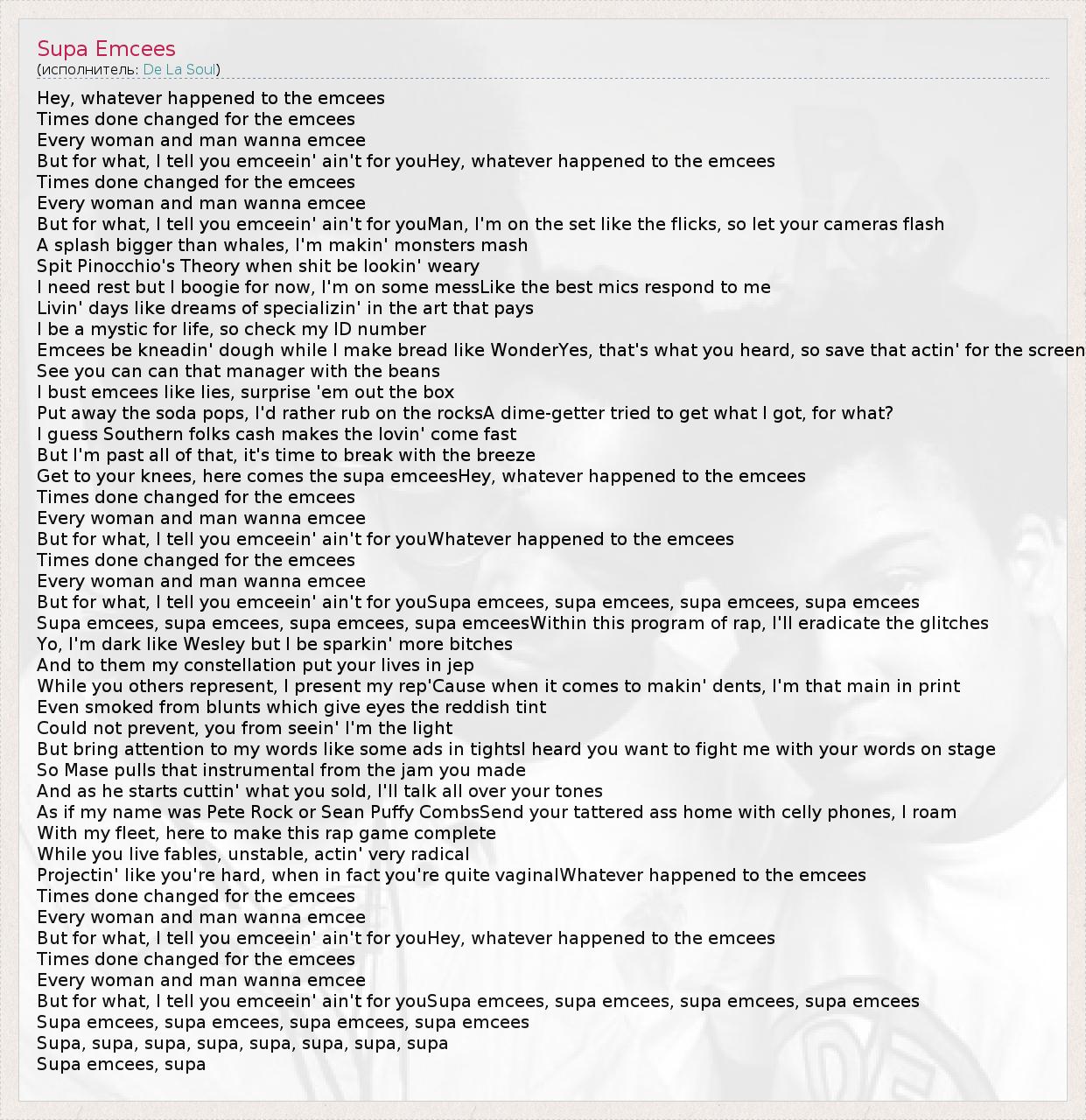 А как ты думаешь, о чем песня "Supa Emcees" ?
