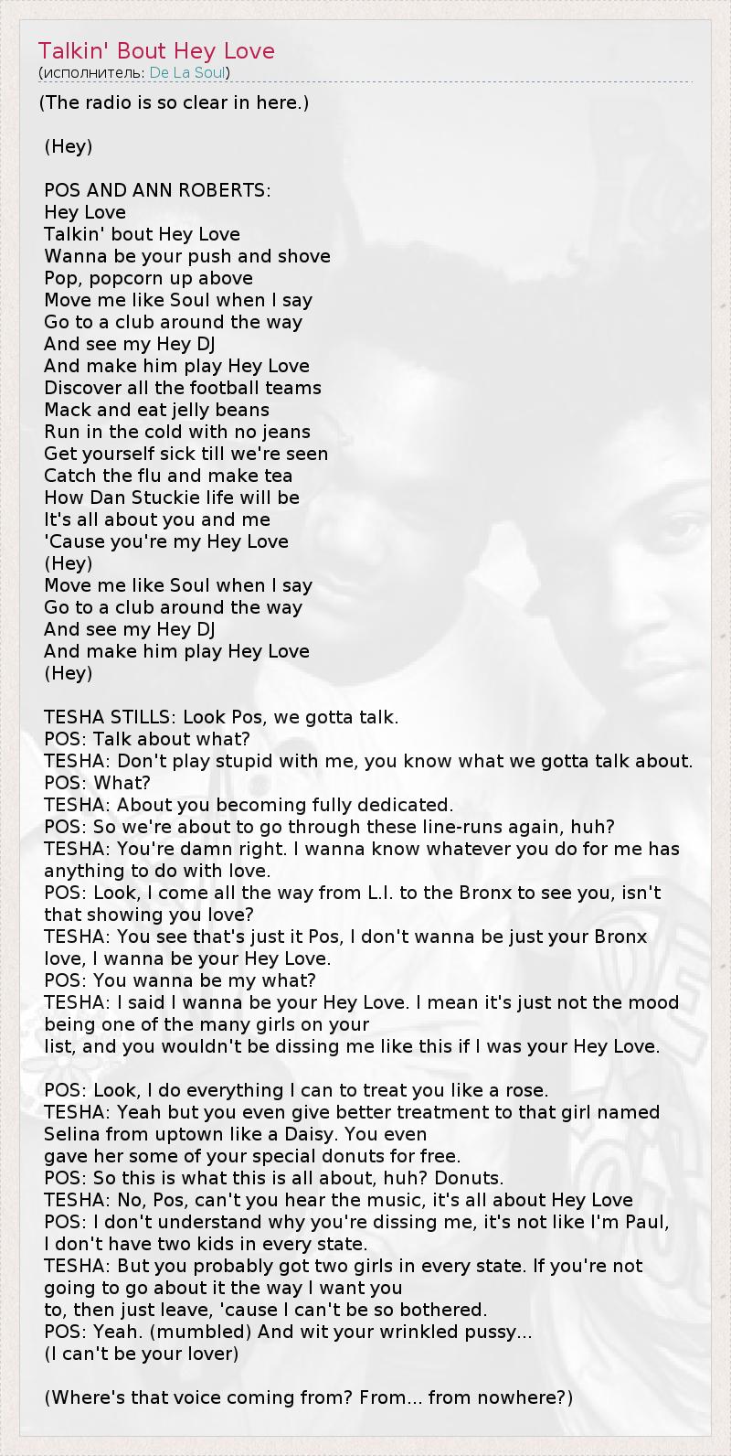А как ты думаешь, о чем песня "Talkin' Bout Hey Love" ?