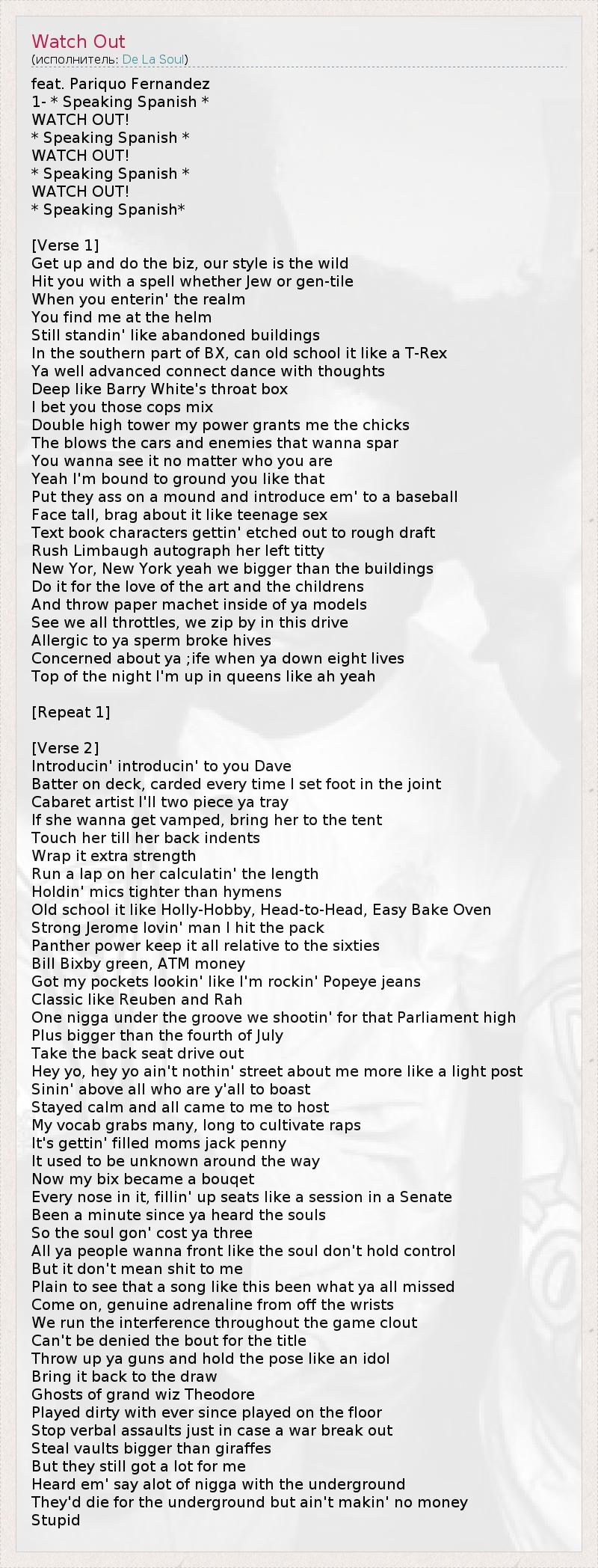 А как ты думаешь, о чем песня "Watch Out" ?