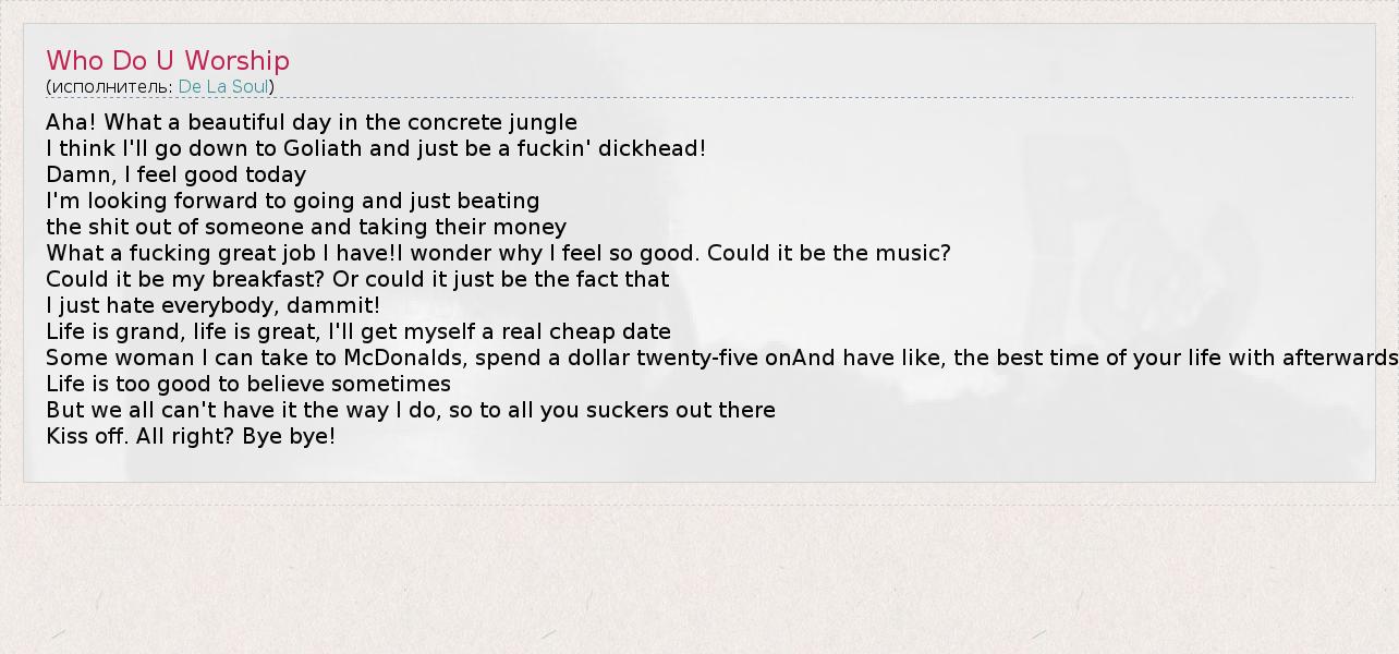 А как ты думаешь, о чем песня "Who Do U Worship" ?