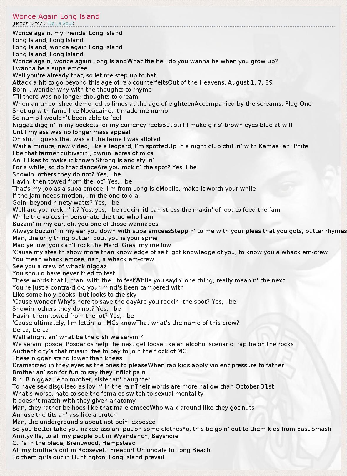 А как ты думаешь, о чем песня "Wonce Again Long Island" ?