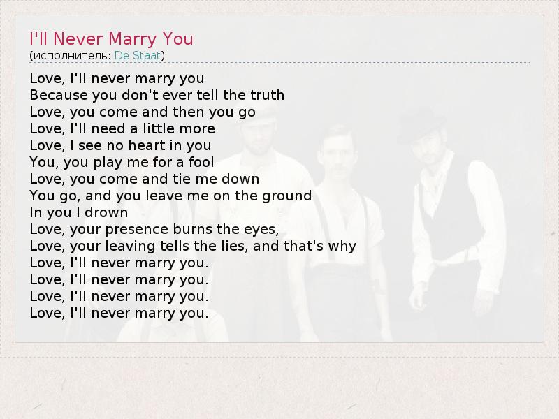 А как ты думаешь, о чем песня "I'll Never Marry You" ?