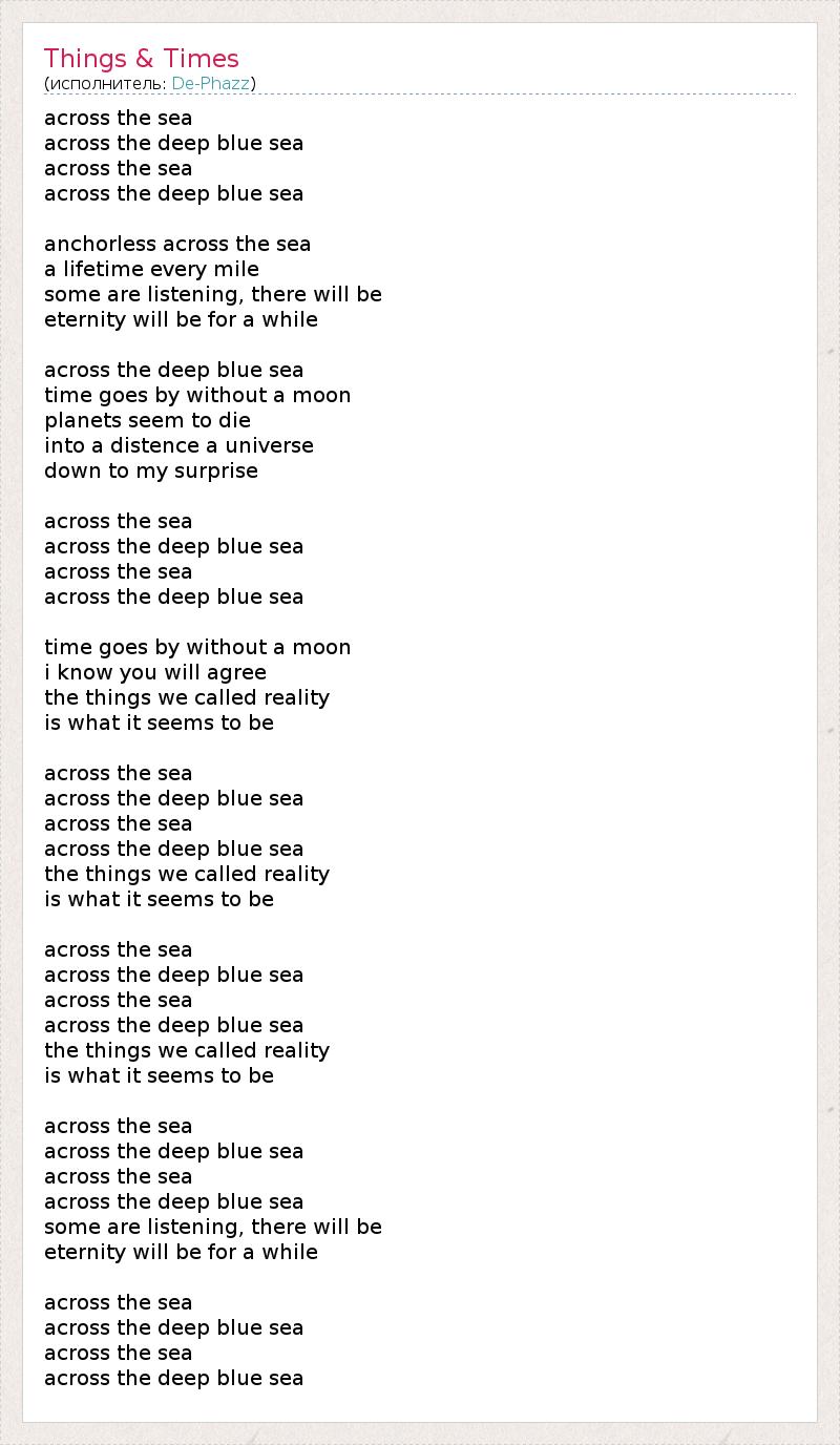 across the sea across the deep blue sea across the sea across the deep blue sea anchorless across the sea a lifetime every mile some are listening, there will be eternity will be for a while across the deep blue sea time goes by without a moon planets seem to die into a distence a universe down to my surprise across the sea across the deep blue sea across the sea across the deep blue sea time goes by without a moon i know you will agree the things we called reality is what it seems to be across the sea across the deep blue sea across the sea across the deep blue sea the things we called reality is what it seems to be across the sea across the deep blue sea across the sea across the deep blue sea the things we called reality is what it seems to be across the sea across the deep blue sea across the sea across the deep blue sea some are listening, there will be eternity will be for a while across the sea across the deep blue sea across the sea across the deep blue sea