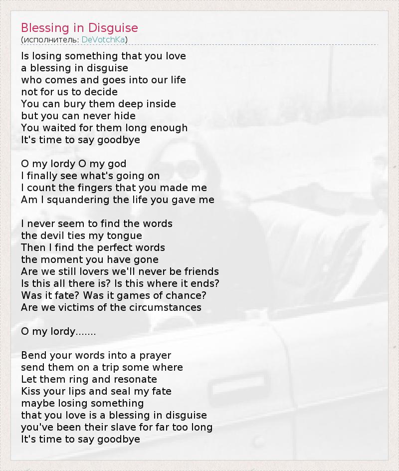 А как ты думаешь, о чем песня "Blessing in Disguise" ?