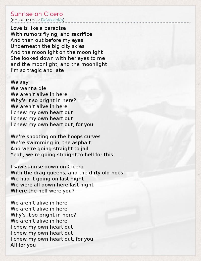 А как ты думаешь, о чем песня "Sunrise on Cicero" ?