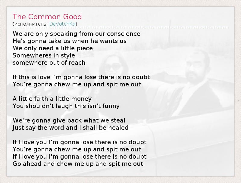 А как ты думаешь, о чем песня "The Common Good" ?