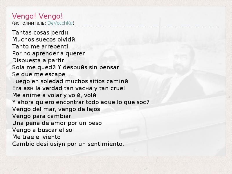 А как ты думаешь, о чем песня "Vengo! Vengo!" ?
